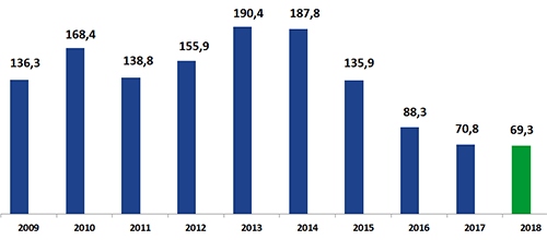 Los créditos del BNDES en los últimos doce años se han centrado principalmente en proyectos de infraestructura. Por ejemplo, para el año pasado 2018, del total de 69,300 millones de reales liberados: 30,400 millones (43,9 % del total desembolsado) fueron para inversiones en infraestructura.