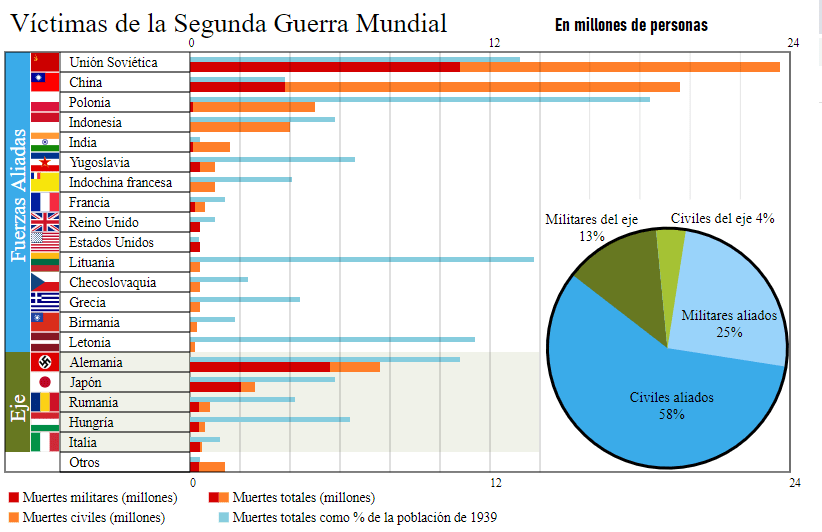 (La operación Bragation fue de lejos la mayor derrota en números de la Alemania nazi, donde el ejército rojo, prácticamente borro del mapa al grupo nazi de ejércitos centro, de un millón de soldados. Significaron 600,000 bajas alemanas y la recuperación de todas las áreas de la URSS, en 58 días los nazis perdieron el doble que lo sufrido en Normandía. La derrota del Japón en Manchuria y en la costa norte del Japón, apresuró la rendición ante una real invasión soviética desde el norte y oeste).