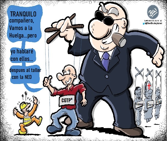 Ya se denunció anteriormente las reuniones de algunos dirigentes de la CGTP con funcionarios de la embajada de los EEUU y sus regulares informes sobre el accionar sindical y las luchas populares. Ya se denunció cómo diversos dirigentes permitían el acceso del «Solidarity Center» de la AFL-CIO, que es la rama “sindical” de la NED (National Endowment for Democracy) institución que recibe fondos del Estado norteamericano, que ha sido denunciada desde diversas tribunas, como un agente de la CIA; y el financiamiento que hace la NED contra el proceso cubano, el venezolano y cualquier otro que vaya en contra los interés del imperio. Ver aqui: https://surhoy.org/2018/01/04/que-es-la-ned-y-quienes-son-sus-peones/ https://surhoy.org/2019/08/25/la-cgtp-del-peru-se-presenta-a-las-elecciones-de-la-mano-de-la-socialdemocracia/