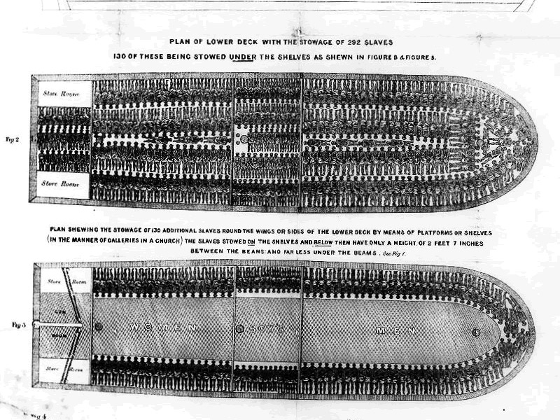 El negocio de esclavos propició un comercio de forma triangular, los barcos transportaban humanos a América, regresaban a Europa con materias primas como ron, tabaco, melaza y azúcar, y llevaban a África principalmente armas, manufacturas de hierro, y mercancías para intercambiar con los proveedores de esclavos. Todo ello contribuyó a desarrollar la fuerza naval británica y la industria de ese país[ii]. La Reina Isabel, años antes había patrocinado al “pionero” de este comercio, un pirata de incierto origen: John Hawkins, prestándole su propio barco de 700 toneladas, “Jesus von Lübeck”. Hawkins se benefició tanto de la venta de esclavos que incluyó a un africano atado con un collar y aretes en la cresta de su escudo de armas.